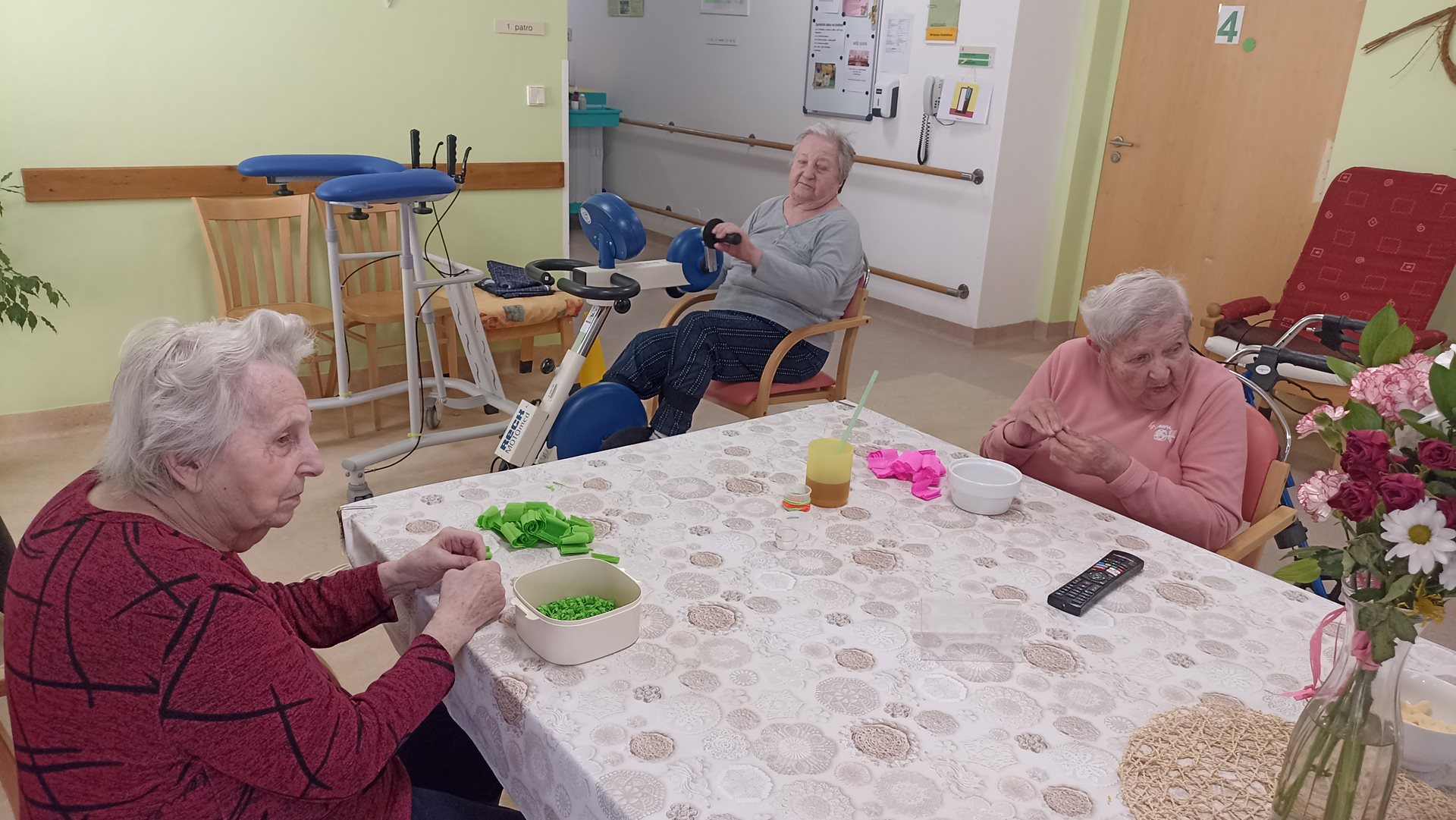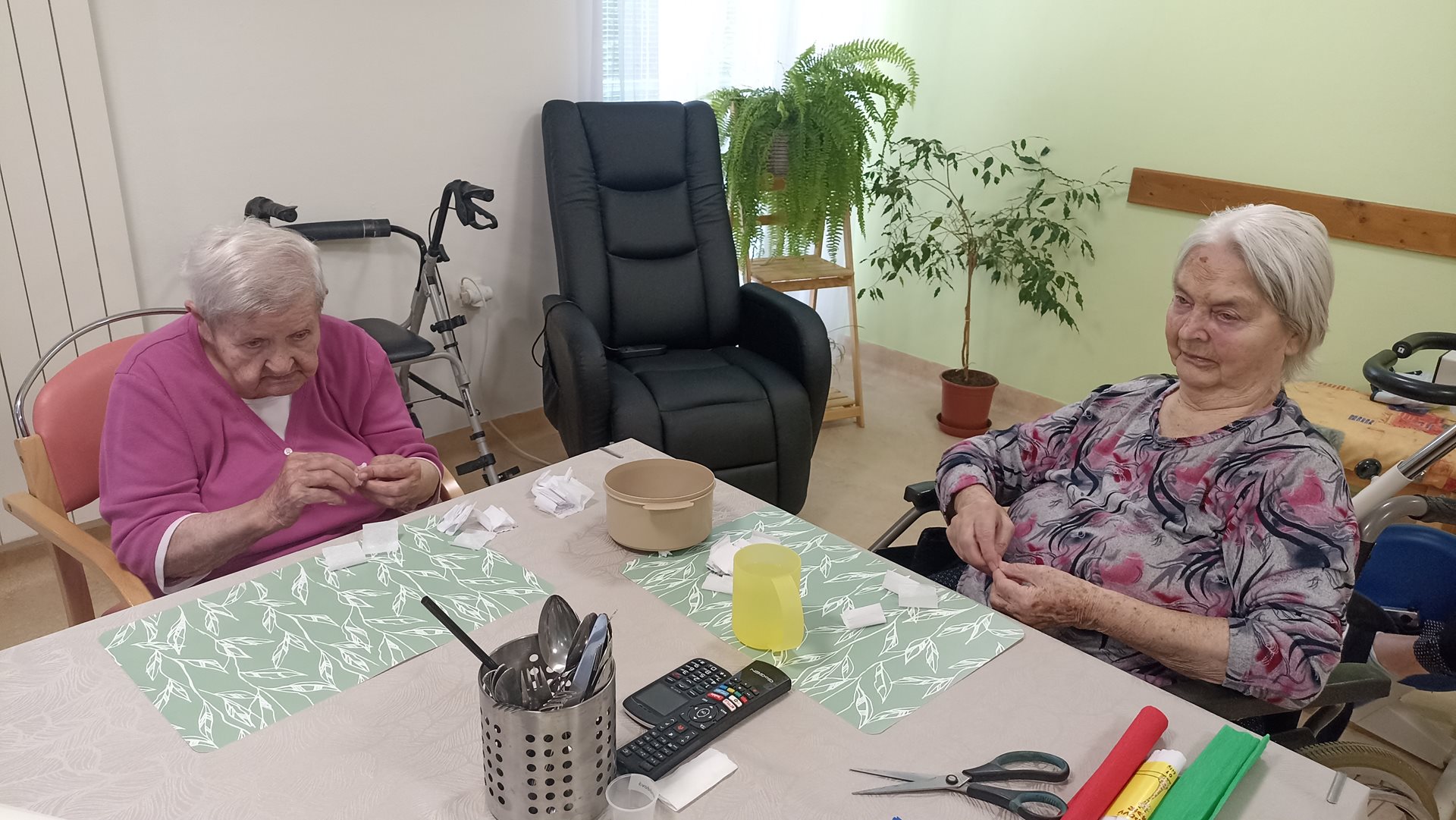 V našem Domově pro seniory pravidelně probíhají tvořivé dílny, které jsou nejen oblíbenou aktivitou pro trávení volného času, ale i cenným prostředkem pro udržování motorických dovedností. Tentokrát jsme se společně pustili do tvoření barevných kuliček z krepového papíru. Práce s krepovým papírem je nejen příjemná na dotek, ale také ideální pro procvičení jemné motoriky prstů. Uživatelé pečlivě tvarovali kuličky, lepili je na připravené šablony a vytvářeli pestré obrazy plné fantazie. Během dílny panovala přátelská atmosféra, nechyběl smích, vzpomínky ani chuť tvořit. Tvořivé aktivity hrají v životě seniorů důležitou roli – podporují paměť, trpělivost a soustředění, a zároveň přinášejí radost z výsledku i pocit smysluplně stráveného času. Děkujeme všem zúčastněným za jejich energii, kreativitu a chuť zapojit se. Těšíme se na další společné tvoření, které přináší nejen krásné výtvory, ale především blízkost, spolupráci a radost ze sdíleného okamžiku.