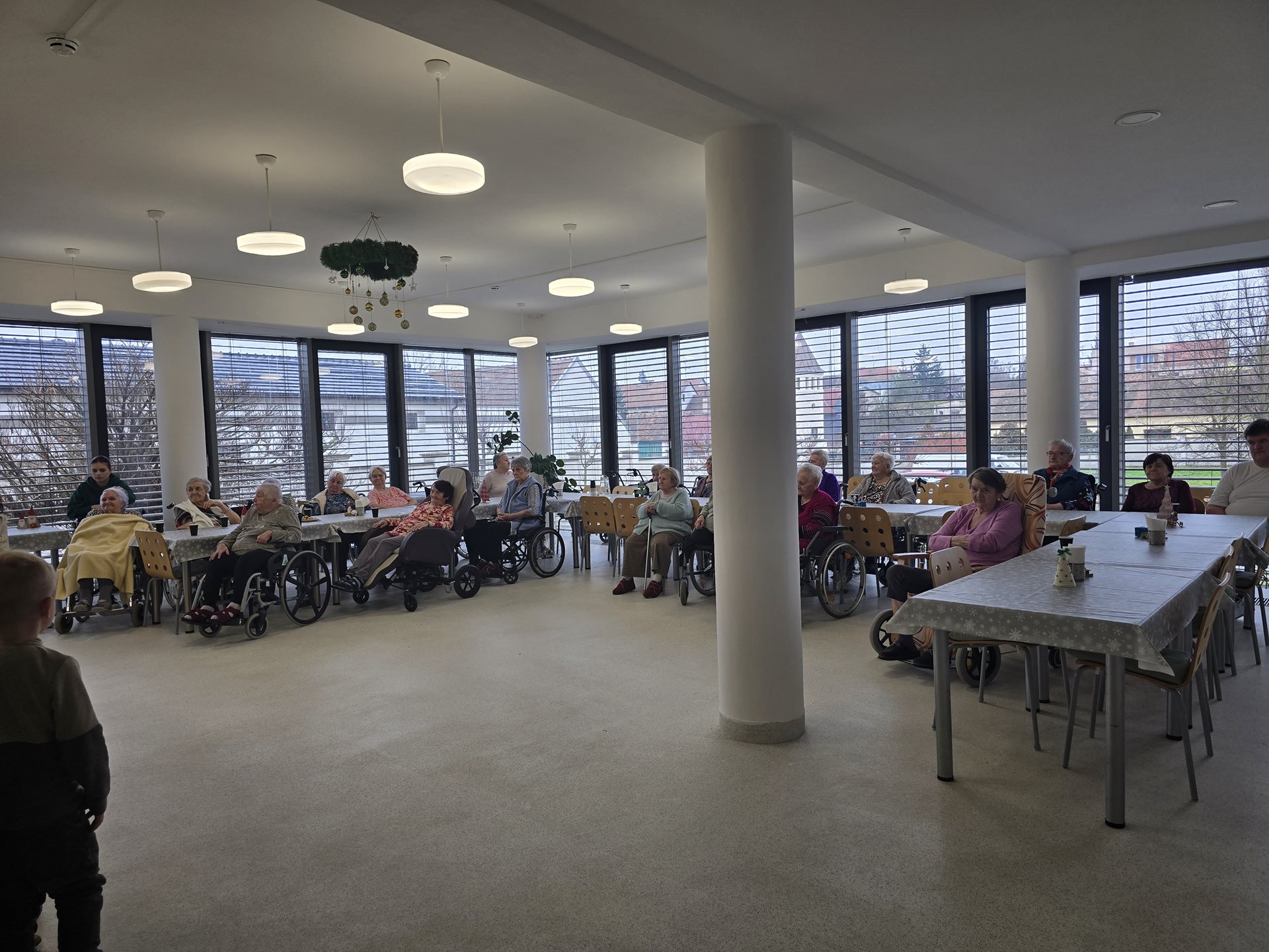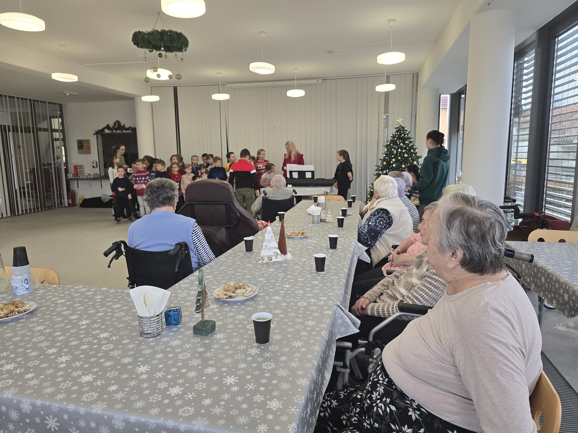 Středečním dopolednem se rozezněla po celém zařízení muzika a zpěv dětí. Není divu – navštívily nás totiž děti z místní základní školy. Společně se svými kantorkami si pro naše uživatele připravily besídku plnou vánočních básniček, písní a koled. Na konci besídky obdarovaly děti naše seniory ručně vytvořenými vánočními přáními. Od našich seniorů na oplátku dostaly našimi seniory vytvořené náramky, trpaslíčky, stromečky a hvězdičky.