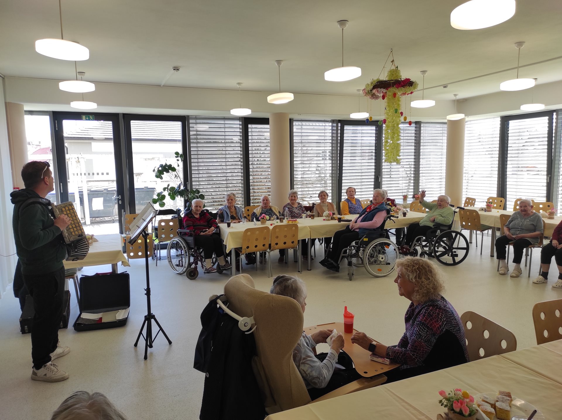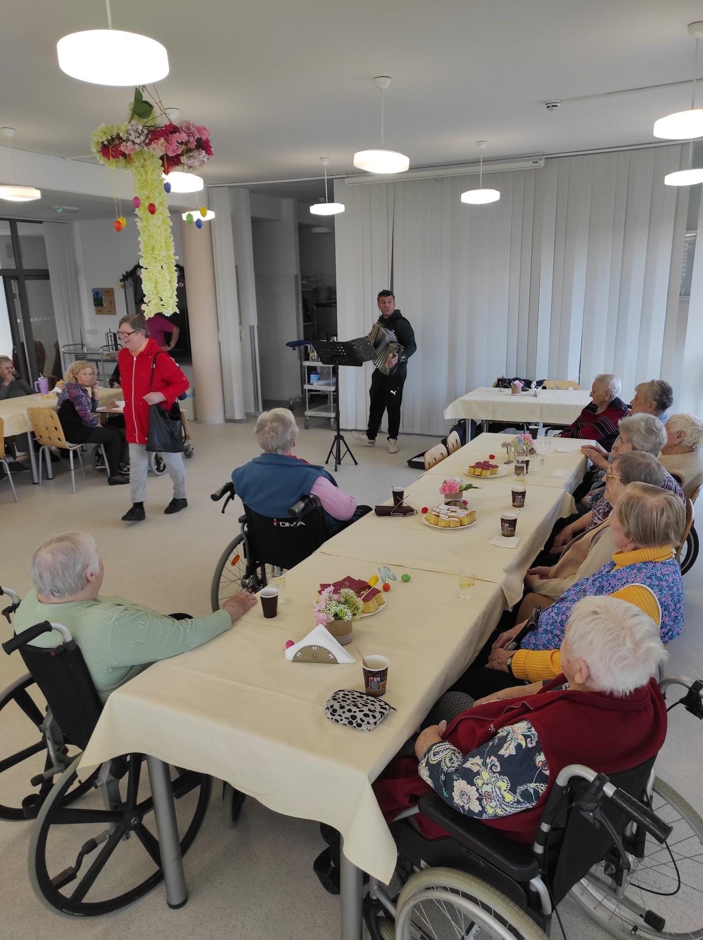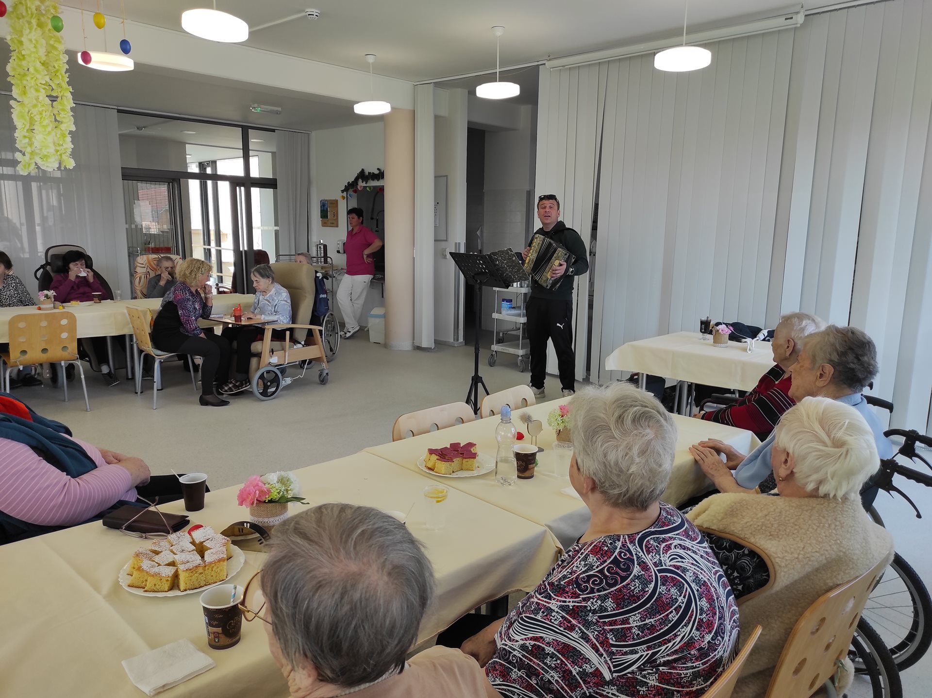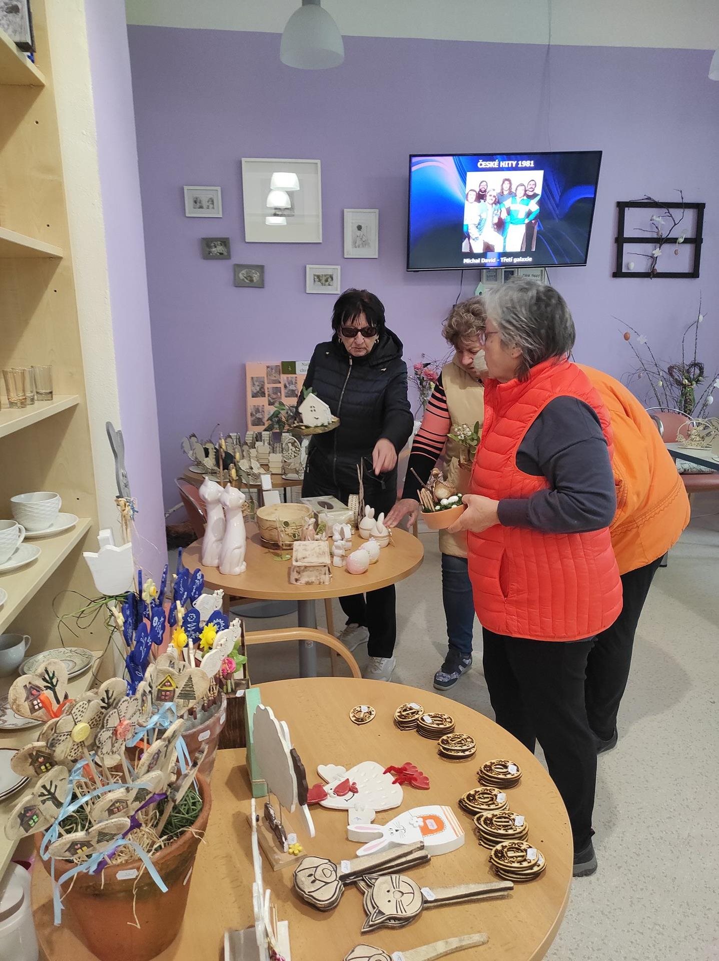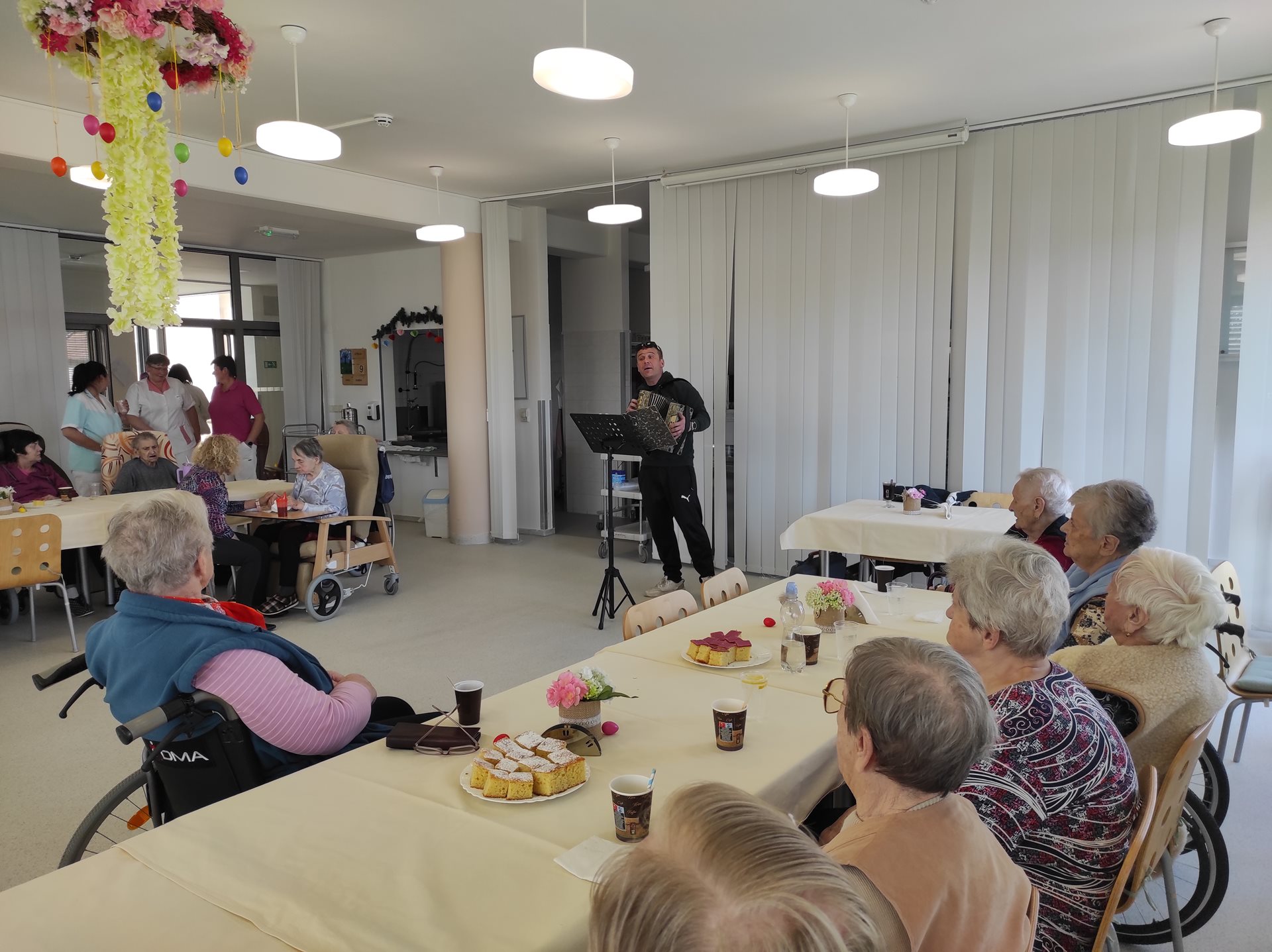 Středeční odpoledne se neslo v duchu přicházejících Velikonoc. Z velké jídelny na pavilonu B se ozýval zpěv doprovázený harmonikou, při kterém si uživatelky vychutnávaly kávu a dezert. V zámecké kavárně pak měli uživatelé a rodinní příslušníci možnost zakoupit sobě či svým blízkým velikonoční dekorace na stůl, závěsné věnce, zápichy do květináčů a v neposlední řadě také perníčky a sušené ovoce.