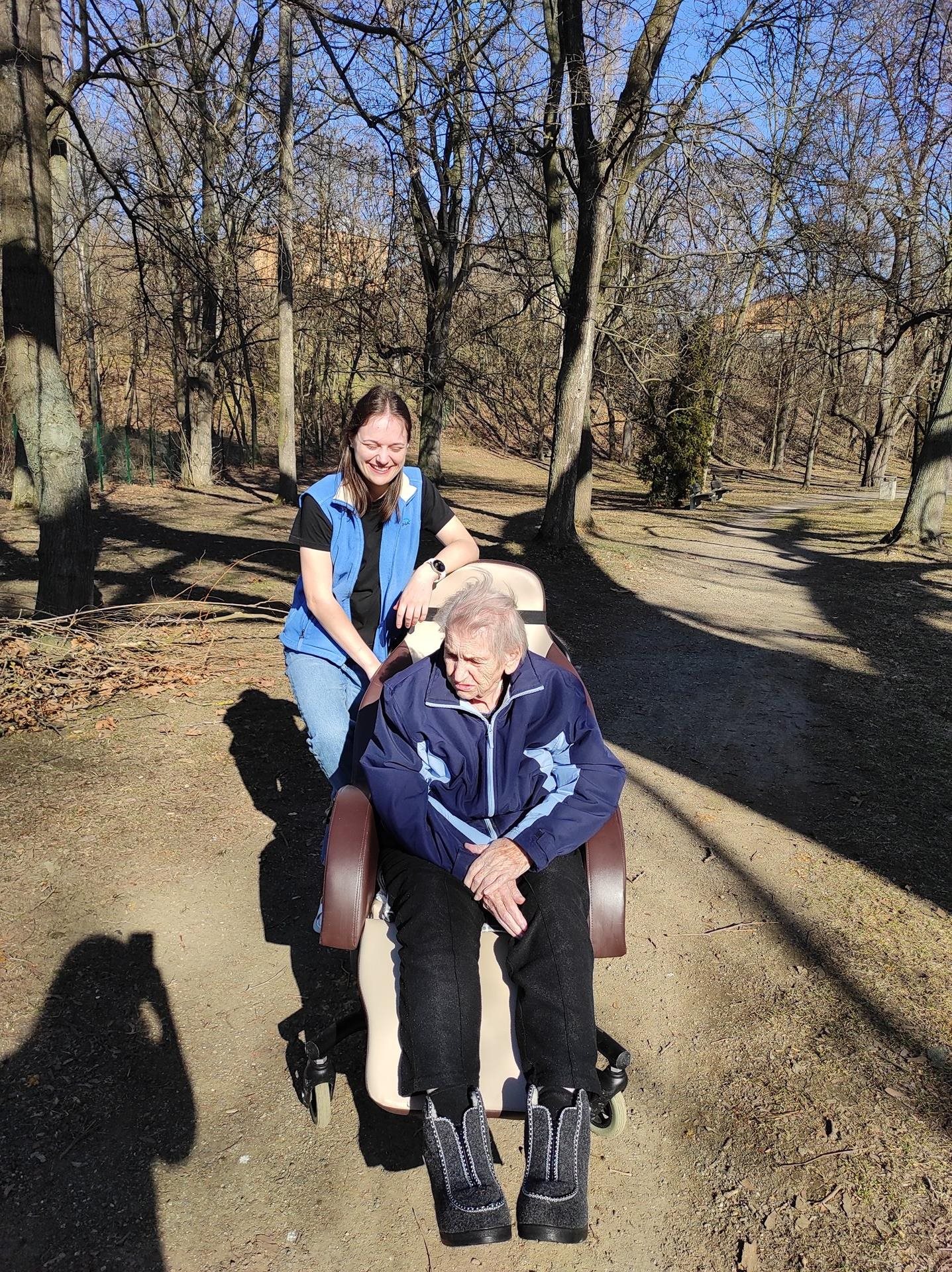 Při pěkném počasí v pondělí jsme se vydaly na vycházku do parku. Naše uživatelka se chtěla podívat k platanu a zároveň se i podívat, jak příroda pokročila v jarním období (jak se barví a rostou jednotlivé rostliny – květiny). Uživatelka byla z návštěvy zámeckého parku nadšená a těší se na další takovou vycházku.