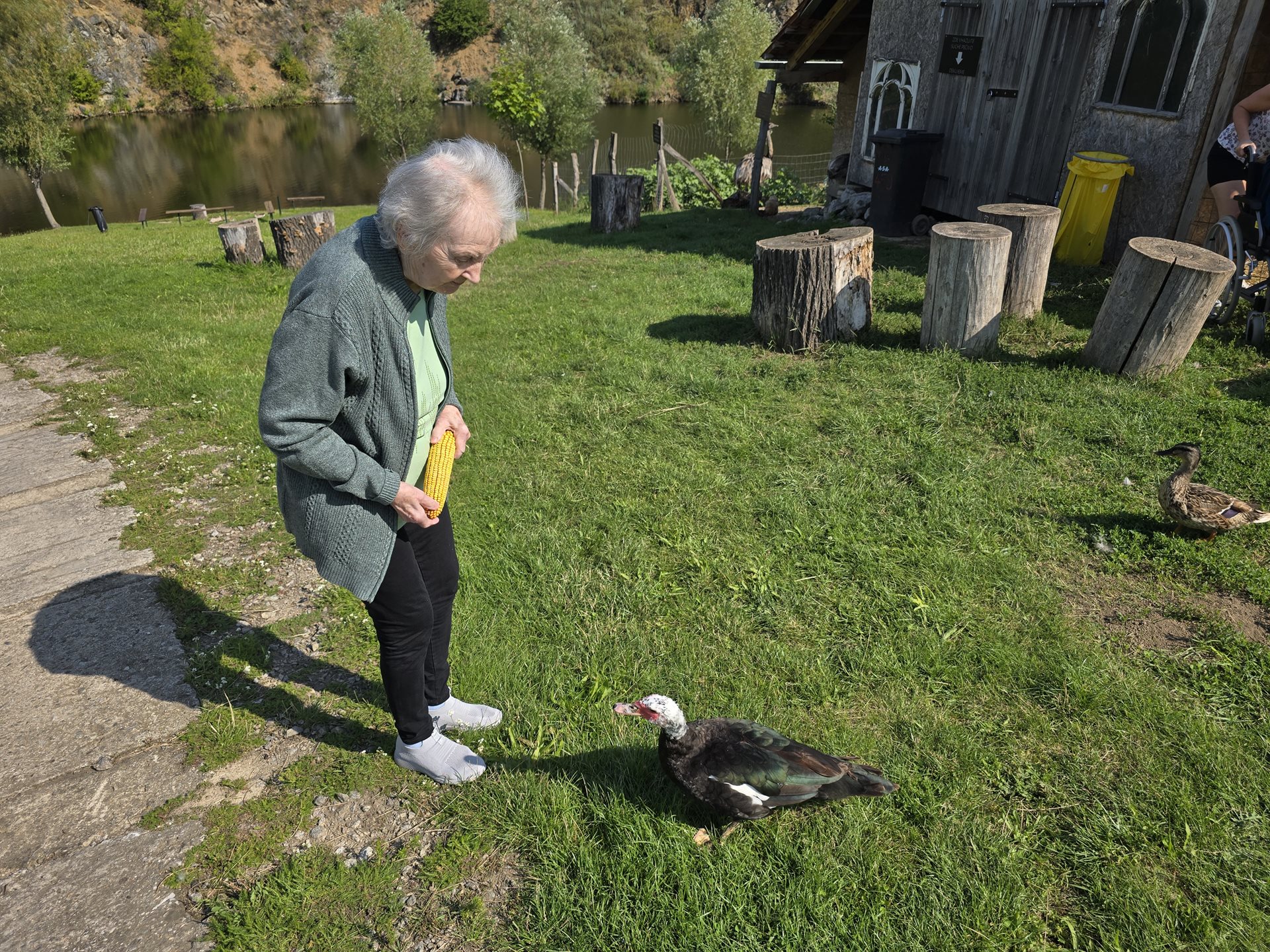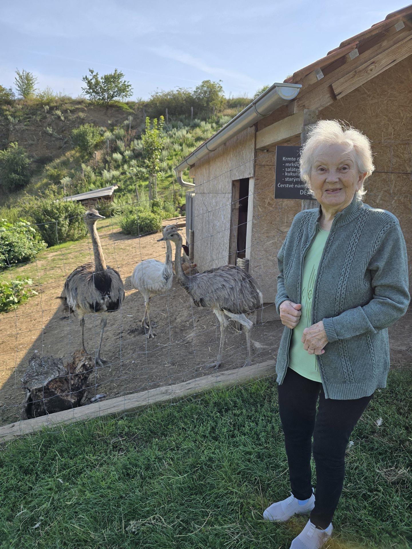 Obyvatelé našeho domova pro seniory se v uplynulých dnech vydali na příjemný výlet do malebného prostředí lomu v Hostěradicích. Po příjezdu nás přivítala klidná atmosféra, šum vody a zpěv ptáků. Uživatelé si s radostí užili možnost pozorovat a nakrmit místní zvířata – od přátelských koz, pštrosů a slepic až po nádherné pávy, kteří se pyšnili svým barevným peřím. Procházka kolem vody byla nejen příležitostí k relaxaci, ale i k nasátí energie z krásné okolní přírody. Ticho a pohoda místa přinesly všem účastníkům pocit uvolnění a radosti. Na tvářích uživatelů se zračil úsměv a spokojenost, která je tím největším oceněním pro všechny, kdo se na organizaci výletu podíleli. Cestu zpět jsme si zpestřili zastávkou na lahodnou zmrzlinu a kávu. Společné posezení bylo příjemným zakončením dne plného zážitků. Takové chvíle posilují přátelské vztahy, přinášejí radost a podporují dobrou náladu, což je pro naše uživatele nesmírně důležité. Výlet do lomu Hostěradice se stal krásnou vzpomínkou, na kterou budeme ještě dlouho s úsměvem vzpomínat.