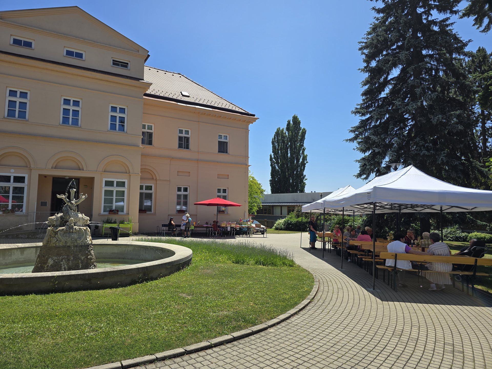 V sobotu, dne 21. června se v zámeckém parku našeho Domova pro seniory konala nově Zahradní slavnost, která přinesla radost a příjemné chvíle všem přítomným. Slavnost oficiálně zahájila paní ředitelka Mgr. Michaela Králová, Dis., spolu se starostou obce Skalice panem Rudolfem Křepelou, místostarostou z obce Morašice panem Mgr. Lukášem Bartuňkem a poslancem panem Ing. Miroslavem Zborovským. Jejich milá slova otevřela program plný hudby, tance i zábavy. O kulturní zážitek se postarali žáci Základní školy Skalice se svým tanečním vystoupením, následovala poté ukázka tanečního vystoupení Moniky Vogelové, kouzelník Katonas nás uhranul svými kouzly a pobavil náš také oblíbený herec a bavič pan Lukáš Pavlásek, který sklidil velký potlesk. Bohaté občerstvení zahrnovalo cukrovou vatu, točenou zmrzlinu, kávu, párek v rohlíku, gyros s hranolkami, točené pivo i osvěžující bezovou limonádu. Návštěvníci si také mohli prohlédnout jarmark s výrobky našich šikovných uživatelek, které svými nápaditými pracemi potěšily nejednoho hosta a v jednom ze stánků probíhala také ochutnávka vín. Děkujeme všem, kteří se na přípravě slavnosti podíleli, a těšíme se na další společná setkání.