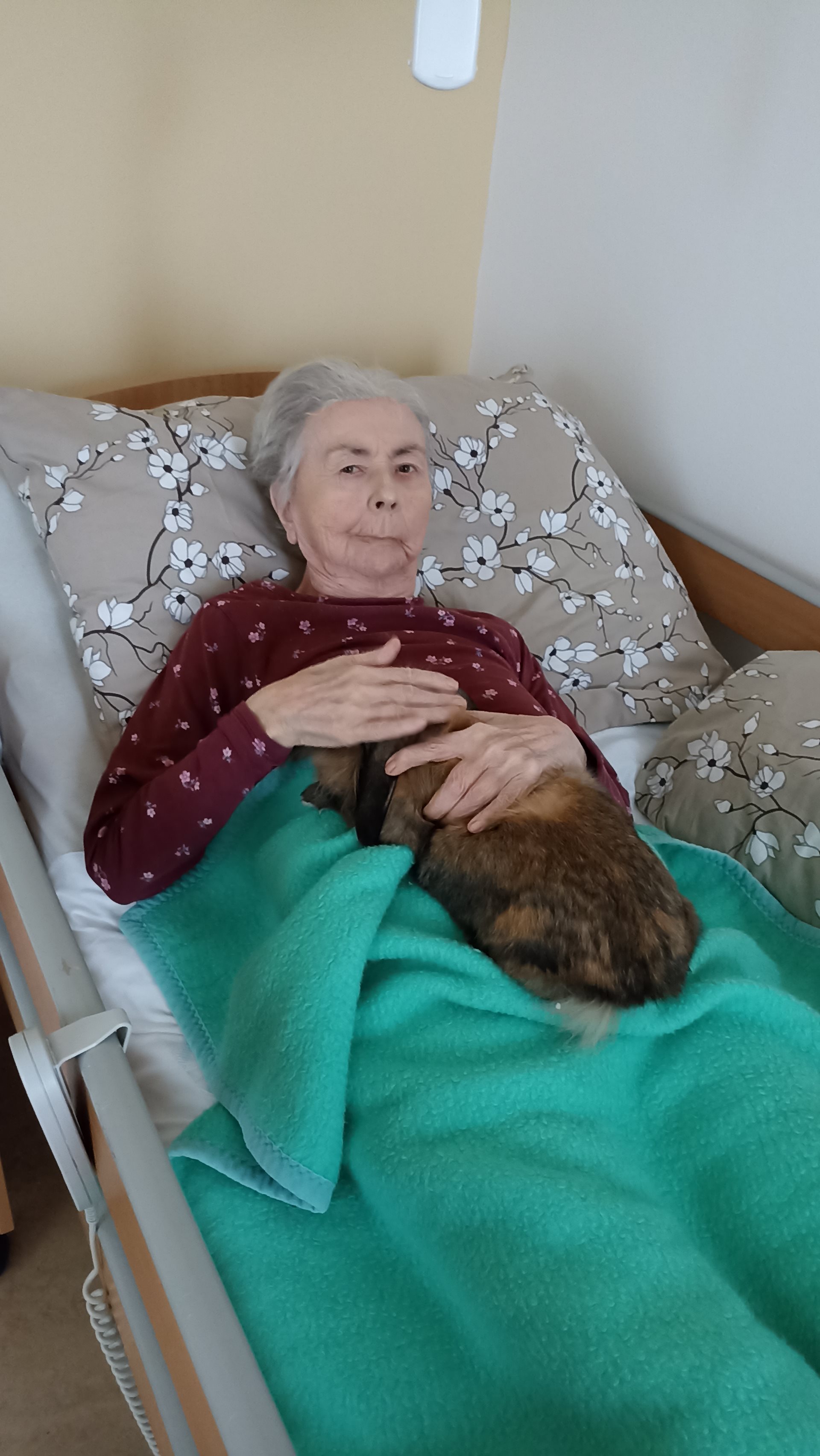 Zooterapie je nejen při individuálních terapiích velmi oblíbená u našich seniorů, a proto v odpoledních hodinách se králíčice Karlička, vypravila potěšit své uživatele. Vykouzlila jim úsměv na rtech a navodila jim spokojenou atmosféru.