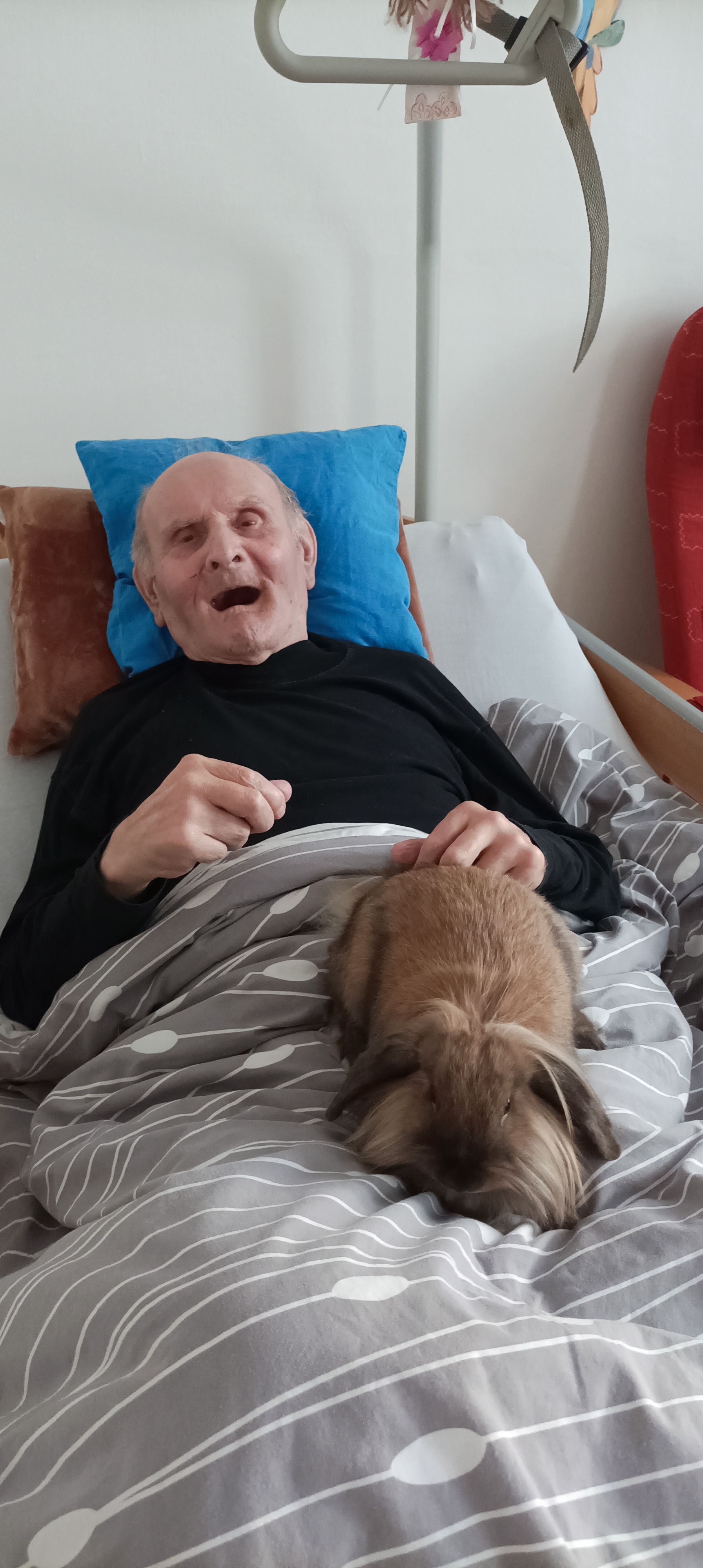 Tento týden na pavilon Z zavítal náš oblíbený králíček Karlička. Naši uživatelé / uživatelky mají vždy radost, když s nimi králíček stráví nějaký ten čas, kdy si jej mohou hladit nebo na něj mluvit a nebo jen pozorovat, jak králíček pobíhá po lůžku. Králíček našim uživatelům vždy vykouzlí úsměv na tváři a vytvoří příjemnou a poklidnou atmosféru.