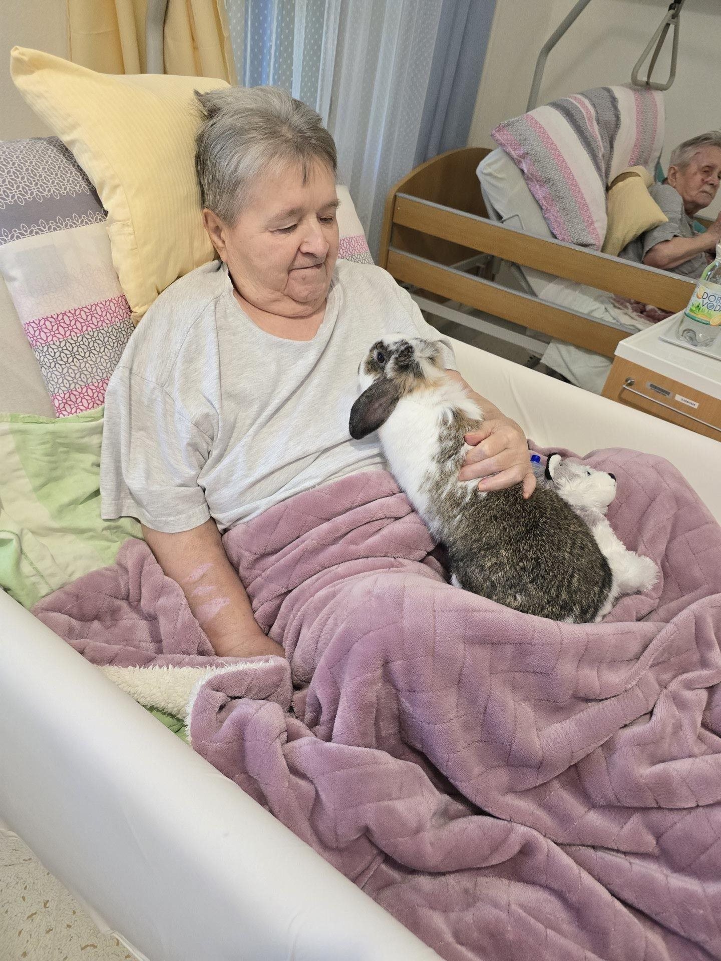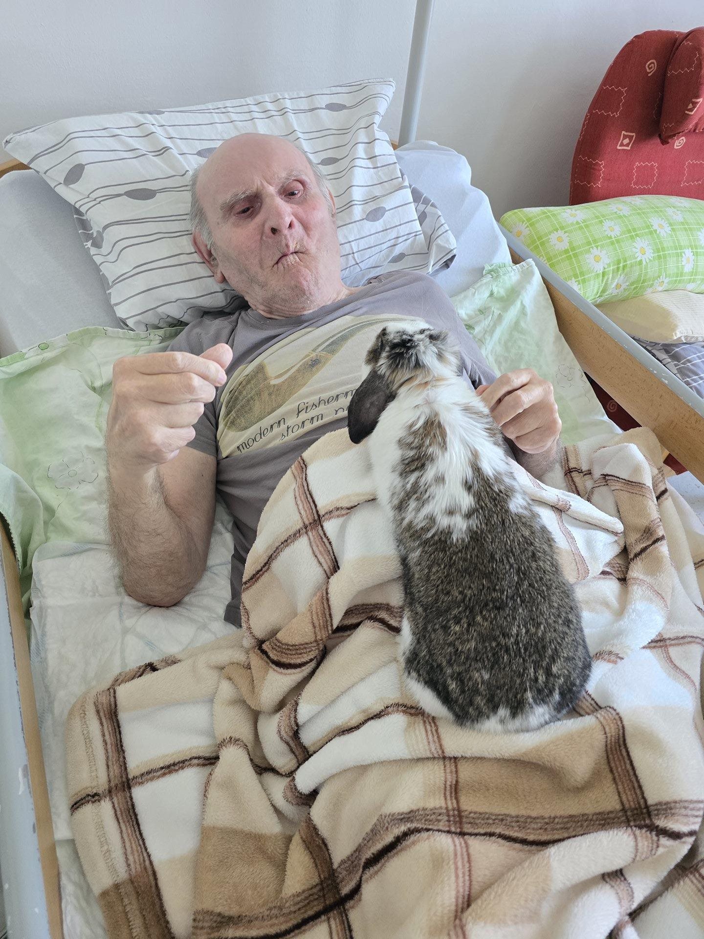 Pondělní dopoledne si uživatelky a uživatele užívali našeho místního králíčka Fidorku. Aktivizace s králíkem má spoustu pozitivních účinků - výhod, a to nejen pro seniory – např. relaxace, pocit potěšení a klidu nebo jen tak si hladit králíka a povídat si u toho s ostatními. U této terapie si uživatelky také procvičily paměť a rovněž si u toho zavzpomínaly na zvířata, která chovaly na svém dvorku. Uživatelky i uživatele byli nadšení, že měli tak milou návštěvu.